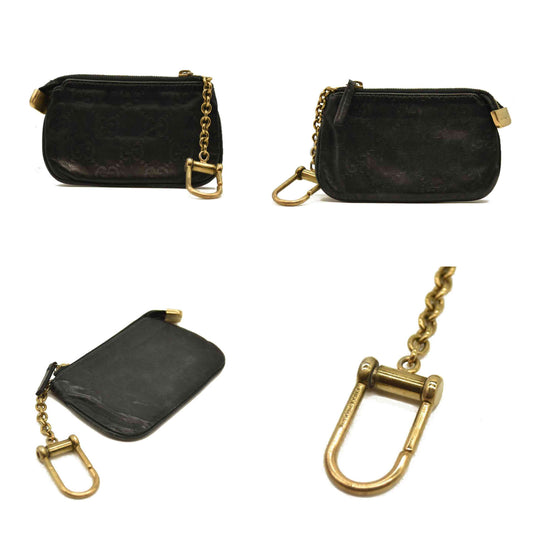 Gucci Pebbled Calfskin GG Marmont 6 Key Holder Black