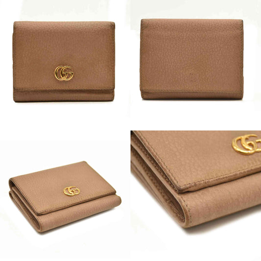 GUCCI GG Marmont Leather Compact Trifold Wallet Beige