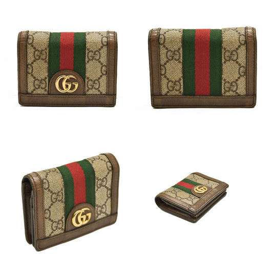 GUCCI Ophidia GG Logo PVC Bifold Wallet Beige