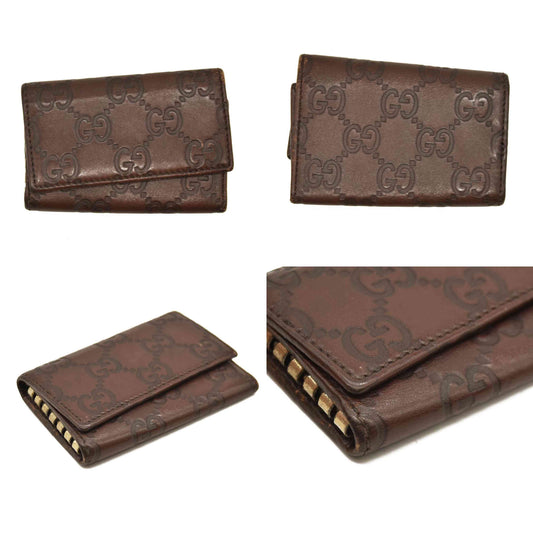 GUCCI Ssima GG Logo Leather 6 Ring Key Case Brown