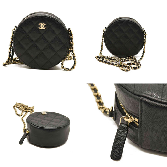 Chanel Caviar Quilted Round Clutch With Chain Black 30*