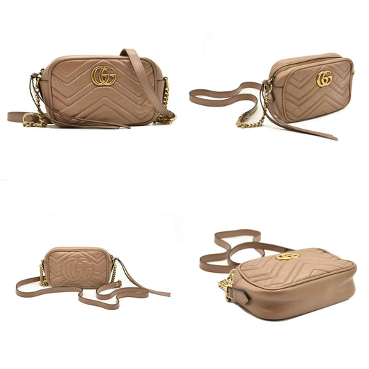 Gucci Calfskin Matelasse Mini GG Marmont Chain Shoulder Bag Porcelain Rose