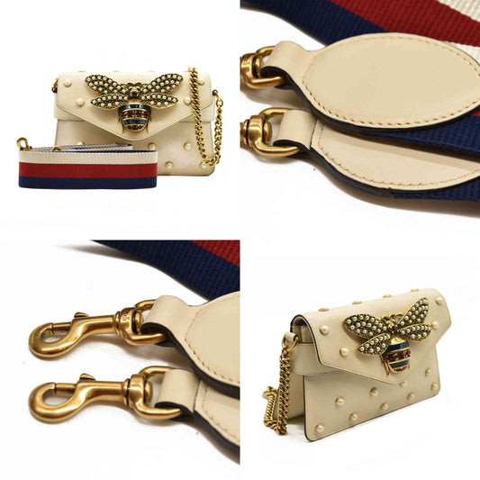 Gucci Nappa Pearl Studded Mini Queen Margaret Broadway Shoulder Bag Mystic White
