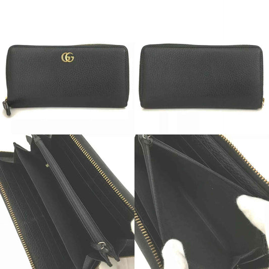 Gucci Dollar Calfskin GG Marmont Zip Around Wallet Black