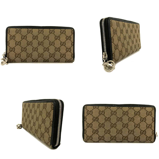 Gucci Monogram Margaux Calfskin Lovely Zip Around Wallet Beige Ebony Cocoa