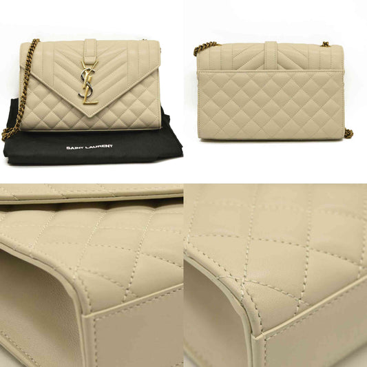 SAINT LAURENT Lambskin Mixed Matelasse Triquilt Medium Monogram Satchel Blanc Vintage