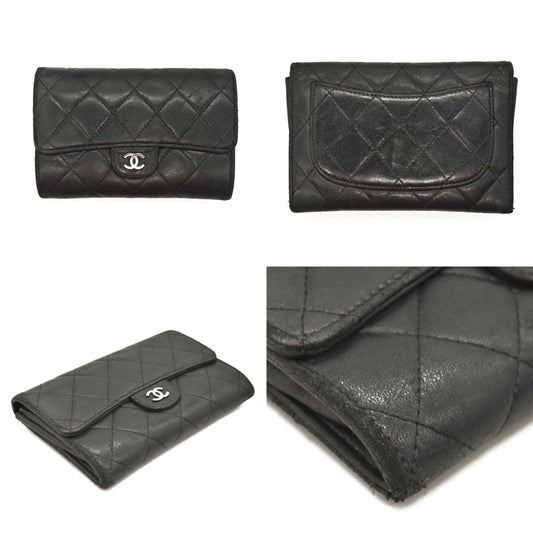 Chanel Lambskin Quilted Large Flap Wallet Black 10954966