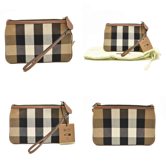 Burberry Peyton Clutch Wristlet Pouch House Check Canvas