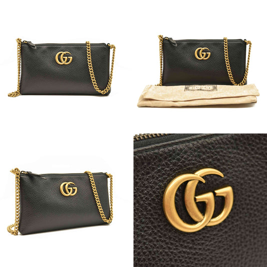 GG Logo Leather Square Chain Shoulder Bag Black