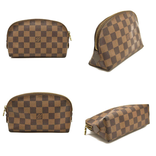Louis Vuitton Damier Ebene Cosmetic Pouch Used Red Interior