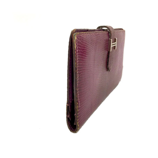 HERMES Lizard Bearn Gusset Wallet Violet
