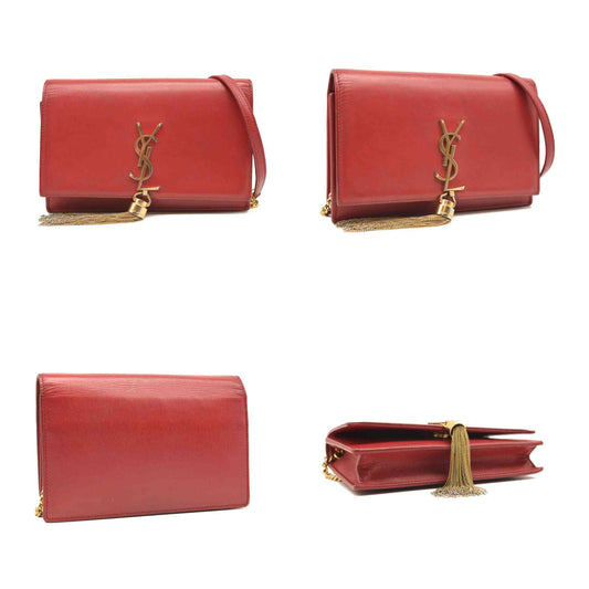 SAINT LAURENT Calfskin Classic Monogram Kate Tassel Chain Wallet Red