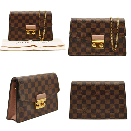 LOUIS VUITTON Damier Ebene Croisette Chain Wallet Rose Ballerine MI2260
