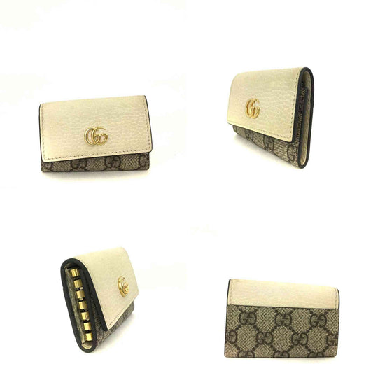 GUCCI Dollar Calfskin GG Supreme Monogram GG Marmont 6 Key Holder Case Beige