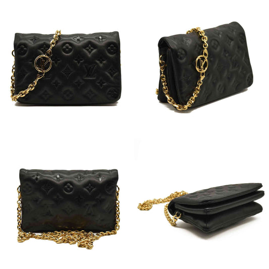 LOUIS VUITTON Lambskin Embossed Monogram Pochette Coussin Black