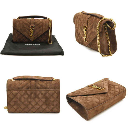 SAINT LAURENT Suede Mixed Matelasse Triquilt Small Monogram Envelope Satchel Cinnamon