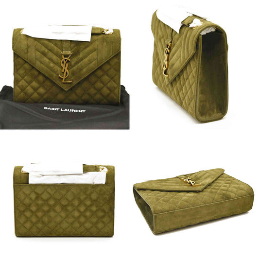 SAINT LAURENT Suede Mixed Matelasse Triquilt Medium Loden Green
