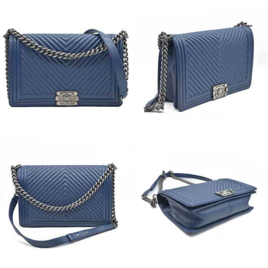 $7000 Chanel Boy Flap Bag Chevron Wrinkled Lambskin New Medium