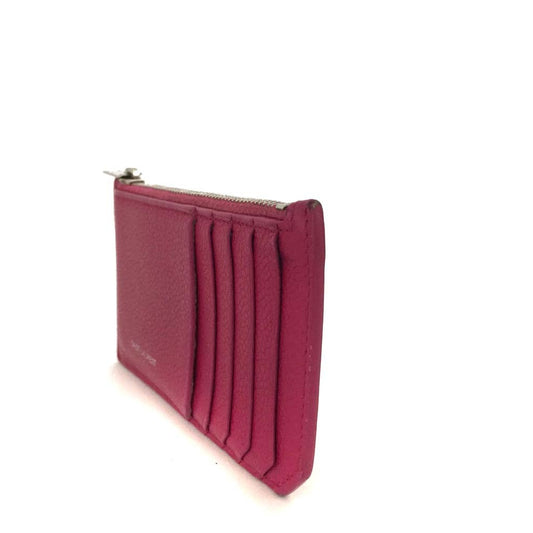 SAINT LAURENT Grained Calfskin 5 Fragments Zip Pouch Card Holder Pink