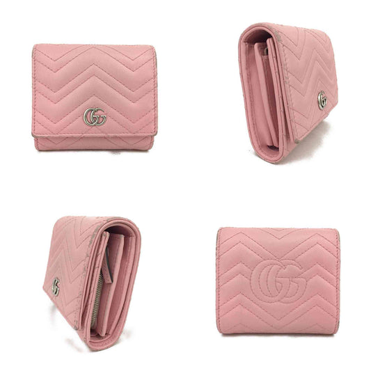 GUCCI Calfskin Matelasse GG Marmont Card Case Wallet Perfect Pink