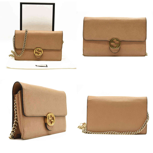 GUCCI Dollar Calfskin Interlocking G Chain Wallet Beige