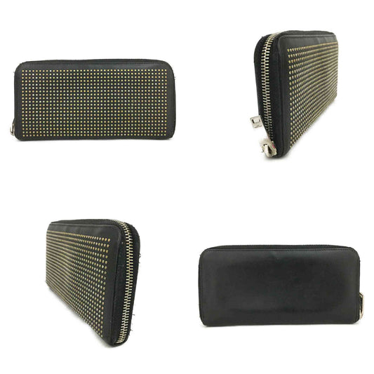 SAINT LAURENT Grain De Poudre Studded Zip Around Wallet Black