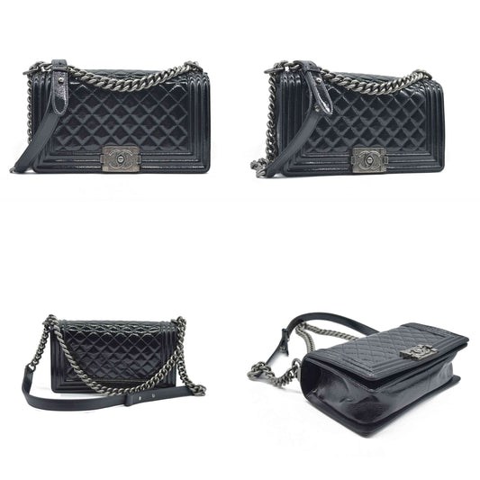 $6900 Chanel Medium Patent Boy Bag CC Logo Chain Shoulder Bag 2014