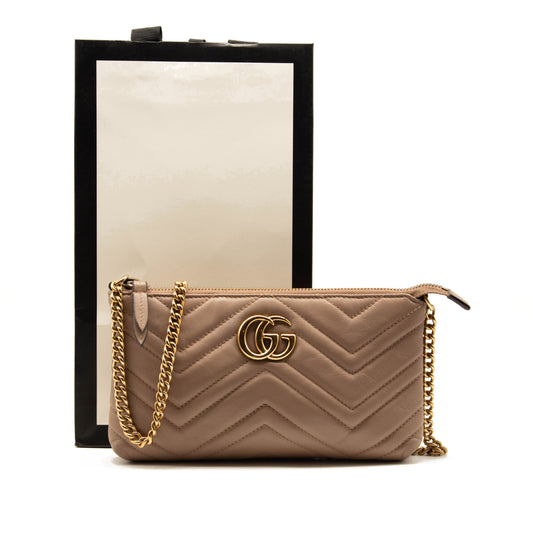 Gucci Calfskin Matelasse Mini GG Marmont Chain Bag Porcelain Rose