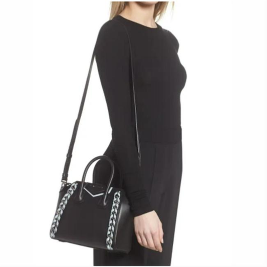Givenchy Mini Antigona Woven Chain Satchel Black Leather Shoulder Bag