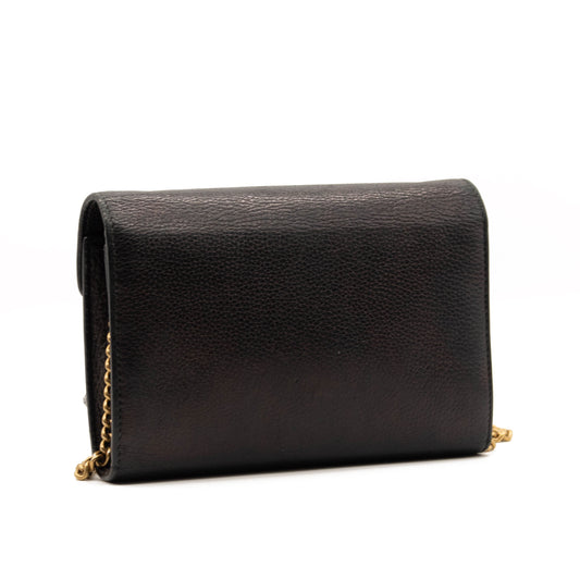 Gucci Marmont Chain Wallet Black Leather Shoulder Bag WOC GG Crossbody