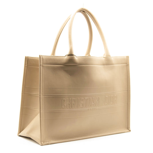 Christian Dior Calfskin Embossed Medium Book Tote Beige