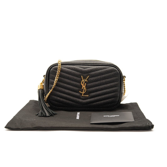Saint Laurent Grain De Poudre Matelasse Monogram Mini Lou Camera Bag Black