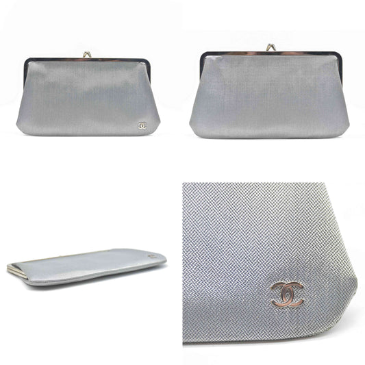 Chanel Kisslock Metallic Silver Clutch