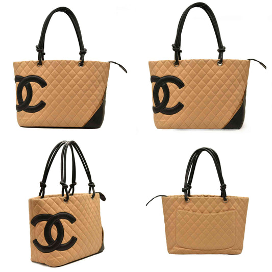 $2250 Chanel Calfskin Quilted Medium Cambon Tote Beige Black