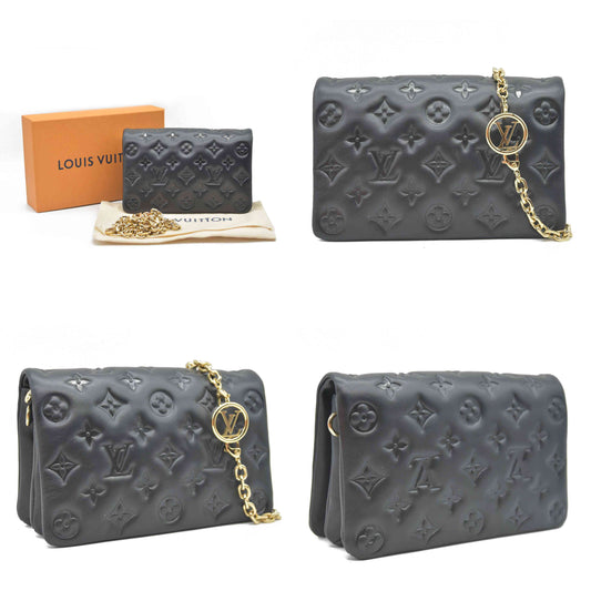 $3150 Louis Vuitton Lambskin Embossed Monogram Pochette Coussin Black RFID