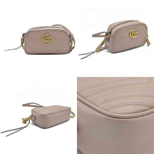 $1950 Gucci Calfskin Matelasse Small GG Marmont Chain Shoulder Bag Beige