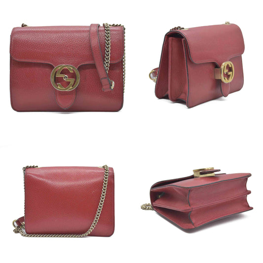 AUCTION $1550 Gucci Dollar Calfskin Interlocking G Shoulder Bag Red