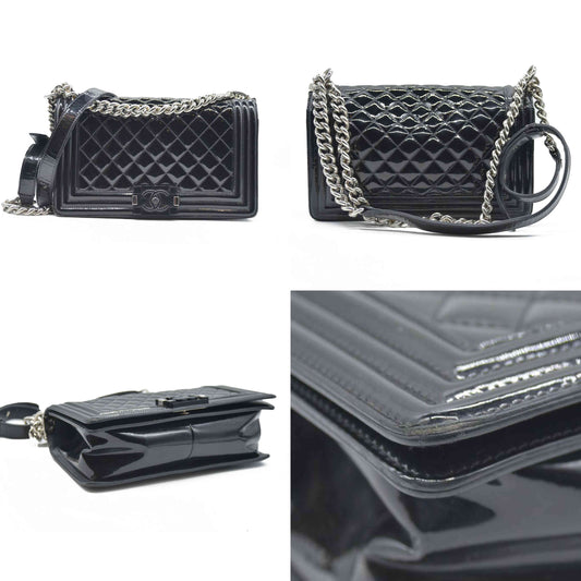Chanel Patent Calfskin Quilted Medium Plexiglass Boy Flap Black