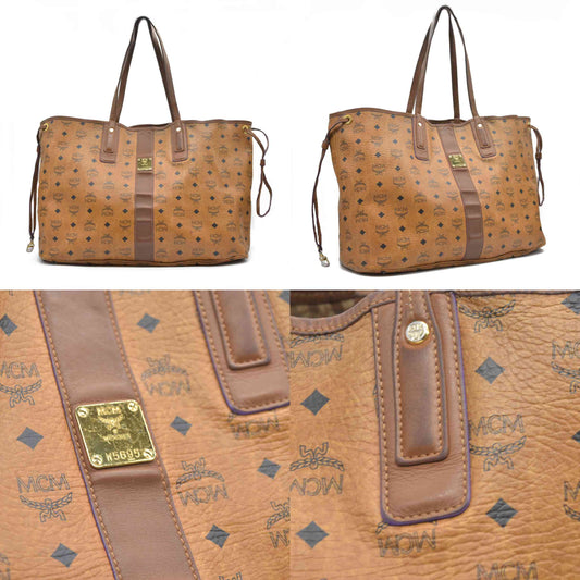 $740 MCM Visetos Large Liz Reversible Shopper Tote Cognac