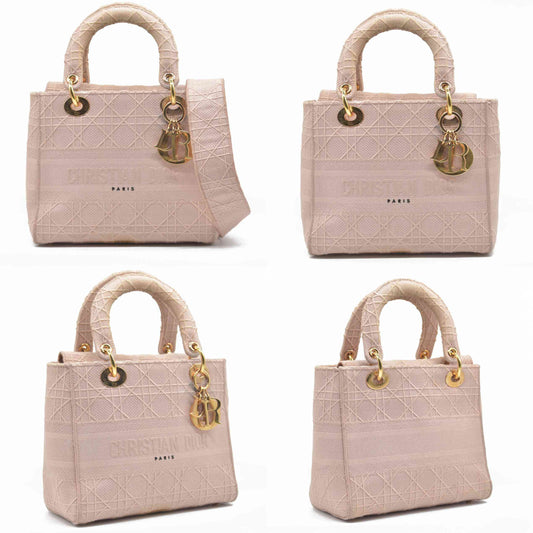 $4500 Christian Dior Canvas Embroidered Cannage Medium Lady D-Lite Pink