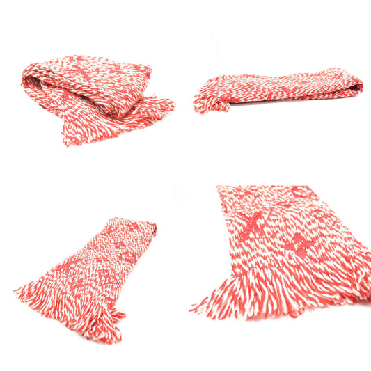 AUCTION $650 LOUIS VUITTON Wool Silk Logomania Mix Scarf Coquelicot