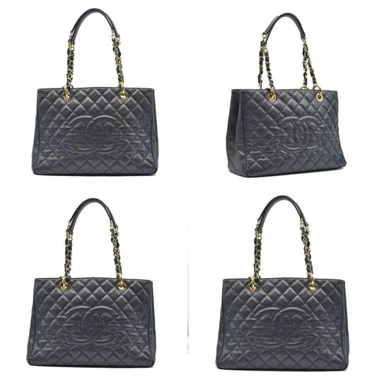 AUCTION $2900 Chanel Caviar Quilted Grand Shopping Tote GST Black