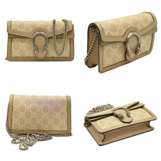 AUCTION $1250 Gucci GG Supreme Monogram Textured Dollar Calfskin Super Mini Dionysus Shoulder Bag Beige Mystic White Oatmeal
