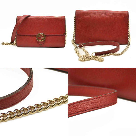 AUCTION $1290 Gucci Dollar Calfskin Interlocking G Chain Wallet Red