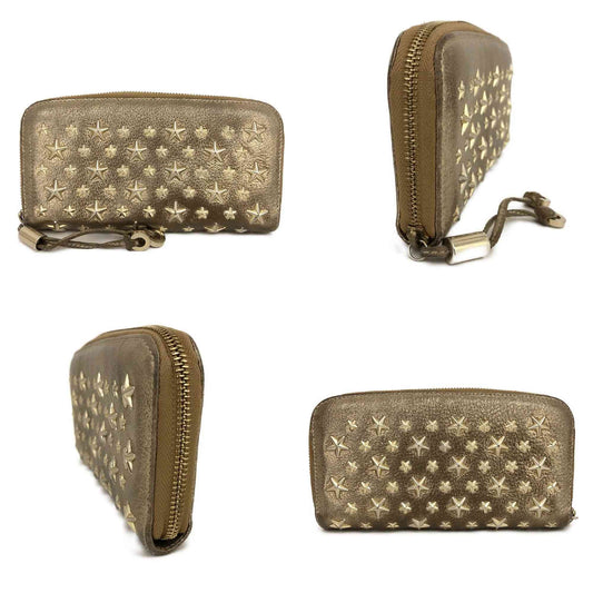 Jimmy Choo Filipa Star Studded Leather Zip Around Long Wallet Gold