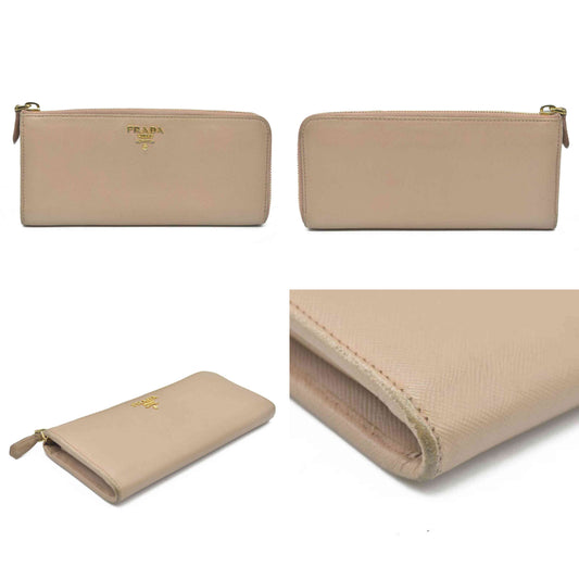 AUCTION $650 Prada Saffiano Metal Zip Around Wallet Cammeo