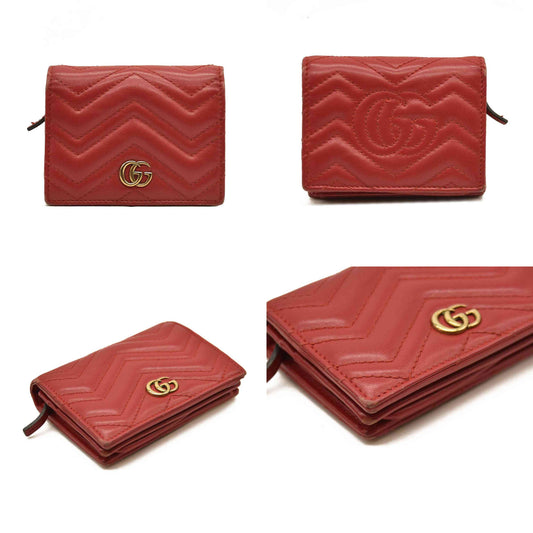 AUCTION $540 GUCCI GG Marmont Quilted Leather Bifold Wallet Red