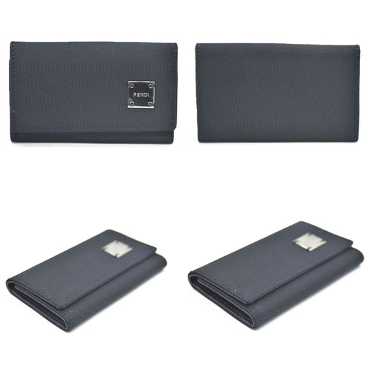 FENDI Logo Plate Canvas 6 Ring Key Case Black/2BG4571