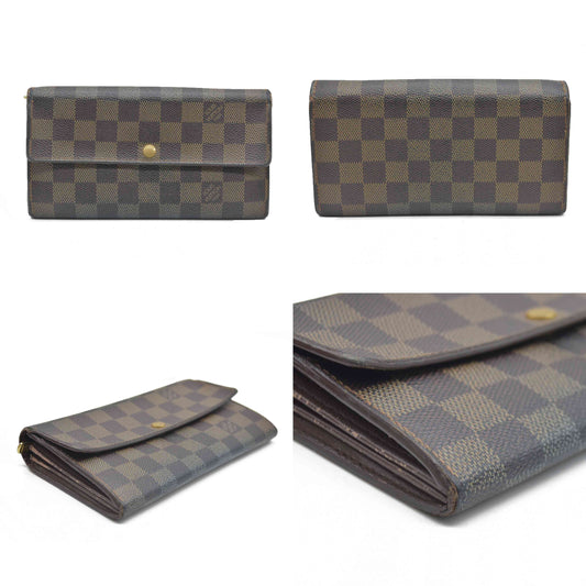 AUCTION $725 Louis Vuitton Damier Porte Feuille Sarah Long Bifold Wallet Brown CA0180