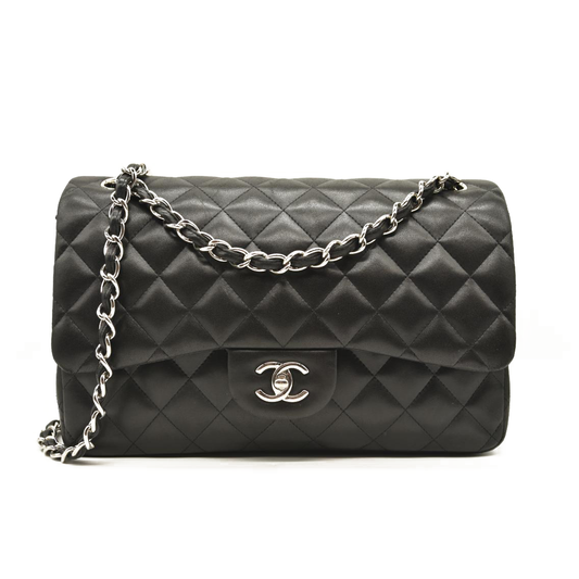 CHANEL Lambskin Quilted Jumbo Double Flap Black